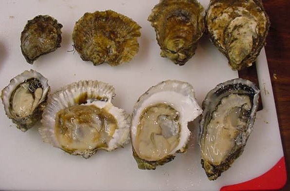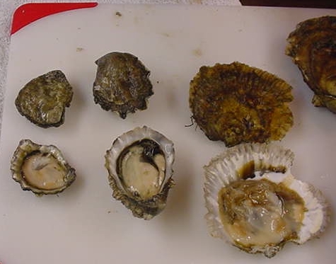 Auster, Pazifische Auster. Abb. 2: Olympia Auster, Kumamoto-Auster,