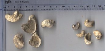 Unerwünschte Fremdkörper, die ins Innere der Auster eindringen, werden sofort mit einer Schalenbildungssubstanz umhüllt. Dies ist ein natürlicher Abwehrmechanismus aller Austern. Demnach können alle Austern seit jeher auch Perlen produzieren. Der kulinarischen Austerngruppe gelingen jedoch nur unansehnliche runde "Steinchen". Dafür schmecken sie jedoch wunderbar. Andere Austernarten wiederum beschichten die Fremdkörper mit einem schillernden Belag aus Perlmutt, welcher mitunter eine betörend schöne und zugleich kostbare Perle hervorbringen kann. Dafür hält sich Ihr Geschmack stark in Grenzen - zumindest für uns Menschen. Im Lauf der letzten Jahrhunderte versuchten Wissenschaftler den mächtigen Stamm der sog. Molluske (Weichtiere bzw. wirbellose Tiere) sachgerecht zu sortieren. Zu diesem Stamm gehören die Gartenschnecken genau so wie die bis zu 20 m langen Tintenfische in der weitgehend unerforschten Tiefe der Weltmeere. Die nahezu zahllosen Muschelarten werden der Klasse der Bivalvia zugeordnet. Dort sind auch die Austernarten zu finden. Wissenschaftler haben sich zwar viel Mühe gegeben die vielen Austernarten sachgerecht zu ordnen, gemeinhin interessieren sich die Menschen jedoch in erster Linie für zwei Austernfamilien: Die Ostreidae (auch als "echte Auster" bezeichnet), weil bestimmte Unterfamilien aus dieser Gruppe hervorragend schmecken, und die (entfernt verwandten) Pteriidae, weil Unterfamilien dieser Gruppe besonders schöne Perlen hervorbringen können. Darüber hinaus stechen manch andere Austerfamilien aufgrund der Schönheit ihrer Schale hervor, welche vielerorts zu ansehnlichen Schmuckstücken verarbeitet wird. An dieser Stelle scheidet sich jedoch der Weg der Austerngeschichte. Während die kulinarischen Austern bereits seit Anbeginn der Menschheit von höchster Wichtigkeit gewesen sein dürften, begann die nicht weniger umfangreiche Historie der Perlaustern erst um das 4. Jahrtausend vor Christi. Sie bedarf einer eigenen Besprechung im Perlausternbereich bei Austern.com. ![]() Links Texigryphaea mucronata. Bei den Schalen rechts handelt es sich um die winzige Austernart Ilymatogyra arietina. Fundort beider Fossilienexemplare: Texas ![]() Ein ungewöhnlich großes Austernfossil. Augenscheinlich