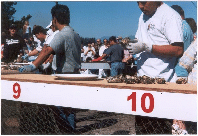 sich der schnellste Austernöffner der Gruppe mit erhobenen