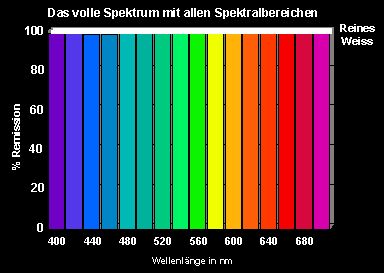die folgende Abbildung zeigt. Eine weiße Probe ist deswegen weiß, weil sie alle Wellenlängenbereiche 100% (90% reichen auch schon, um sie weiß aussehen zu lassen!) remittiert! |