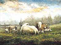 und Wiesen, male ich immer eine dunkelrote Schicht (einen Fond).