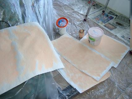 zuerst haben wir einige lose Bahnen Raufasertapete weiß