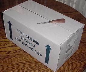 simply can't be beat. Let's order some Internet Oysters! I chose a large oyster grower in the State of Washington on this particular order. Their website is nothing short of a masterpiece in every way. It's interesting and fun to visit, even if one chooses not to buy anything online. The shopping cart computer program proves to be as perfect as the rest of the website. With ease was I able to breeze though a very nice selection of oysters and other shellfish. The computer program permits changes to your order along the way ("Umm. Let's make that two dozen small oysters instead of one, try some clams too, and find out find out how much that will cost including shipping delivered to our door-step. Hmm. Not too bad. Let's add some fresh mussels and see what that would cost..."). It is also possible to choose from a few shippers, compare shipping prices, and schedule the delivery on (or around) a certain date. Very impressive indeed. I completed my order, chose to check out, then typed in my address and credit card information - done. It must also be noted that a magnificent website is not going to make the oysters taste any better. I've dealt with some growers with real Spartan looking websites, some not even featuring an order form - just email. Nonetheless, the service and the oysters proved to be excellent. Glorious Moment: The Shellfish Box Cometh!